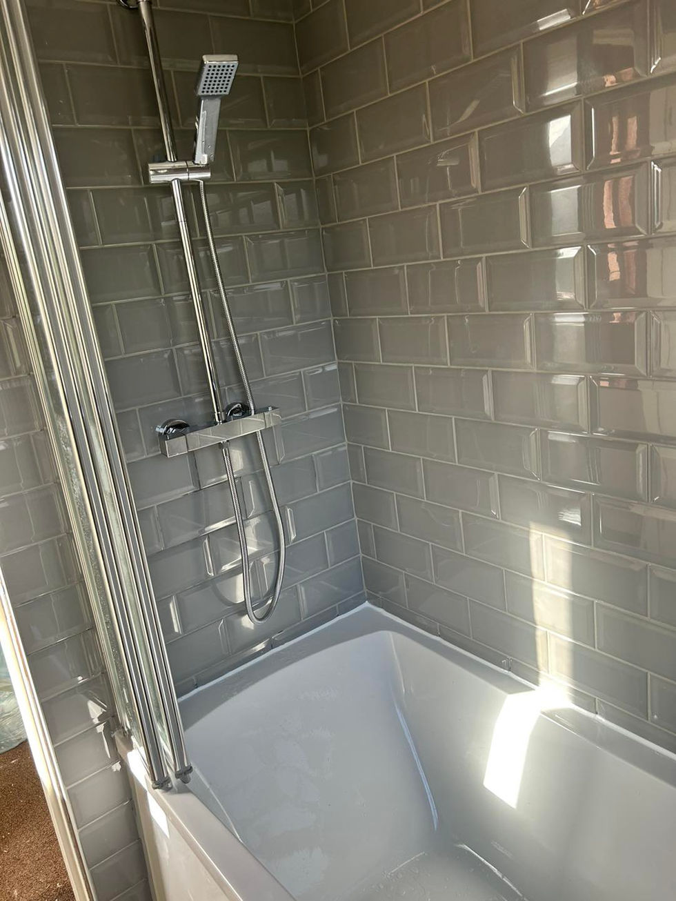 Wayne Oliver Plumbing & Heating specialises in modern bathroom renovation projects featuring grey tiles, white fixtures, and towel radiators. We have included a collection of our before and after pictures.